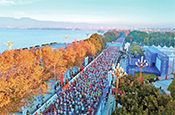 11月30日,2025上合昆明马拉松赛在昆明滇池畔鸣枪,2.6万名选手开跑,参赛人数创历史新高。