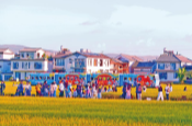 金秋十月,大理喜洲稻浪翻涌,“喜洲号”“有风号”小火车满载游客在稻田间穿行,形成独特的风景线,吸引了众多游客。