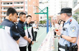 民警向学生讲解相关禁毒知识。记者杨艳辉摄