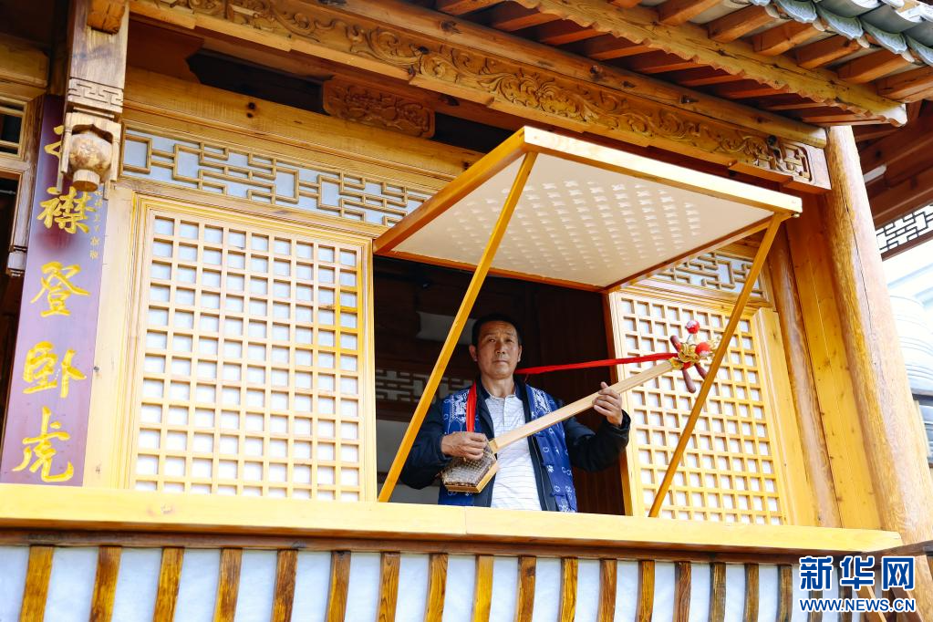 白族大本曲弹唱(6月14日摄)。新华网发 (胡妤雅 摄)
