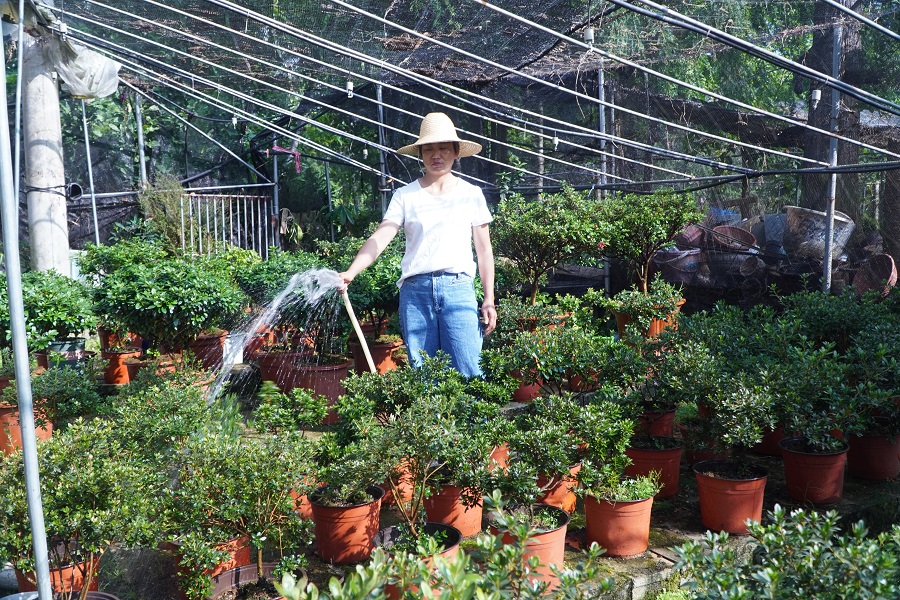 胡萍香正在给杜鹃花浇水(资料图)。龙陵县融媒体中心 供图