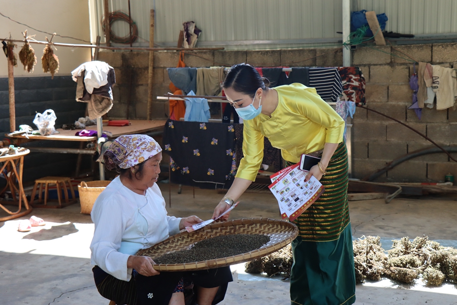 “金色娜允”傣族消防宣传志愿服务队,在工作之余向游客及娜允古镇内的居民宣讲消防安全知识。(资料图)