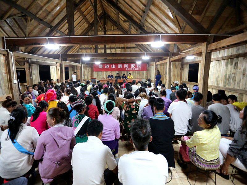 在澜沧县景迈山芒景村翁哇小组,布朗族消防宣传志愿服务队队员哎江用布朗族语言为80余名村民讲解消防安全知识。在景迈山传统村落,这样的“双语夜校”今年已举办了60余次,让4800余名当地民族群众接受了消防安全知识教育。