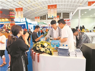 在热闹的文化旅游馆,澜沧拉祜族自治县老达保村民们的歌声一遍遍响起,把拉祜山的风吹向世界。普洱以独特的民族文化、新茶饮、新咖饮以及茶旅、咖旅产品,引导游客探索普洱多角度的魅力。普洱古道旅行社市场销售人员李柏伶介绍说,此次带来了与普洱市文化和旅游局合作的小程序“品玩普洱”,其中包含了普洱的各大旅游景点。“客人来到普洱,只需扫码就可以看到普洱各种特色的旅游线路,目前比较好卖的产品有‘熊猫茶茶’‘熊猫咖咖’‘一城两味’等。” 会展期间,文化旅游馆普洱展区,参展企业营业额达6万元以上,咨询人数1万余人,意向合作企业200余家,发放普洱旅游手绘地图、漫游普洱线路折页、宣传册7500余份。