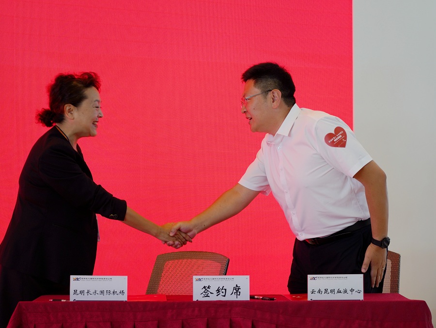 在中国民用航空云南安全监督管理局等驻场单位的见证下,昆明长水国际机场党委书记、董事长丁蓉丽与云南昆明血液中心主任成钢共同签订《云南省昆明地区无偿献血应急保障协议书》,标志着昆明长水国际机场将作为昆明地区血液应急保障的后备力量,通过引导动员职工积极参与无偿献血,组建无偿献血应急队伍,全力保障昆明地区各级各类医疗机构临床用血需要。