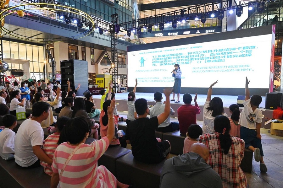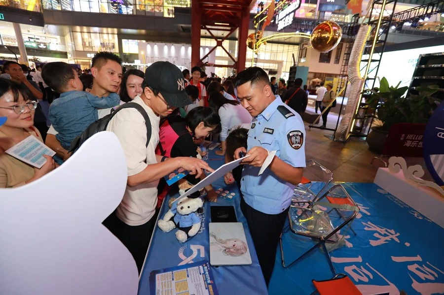 活动现场设置了“守护先锋”“钱包保卫战”“眼明手疾”“消消诈”“知识达人”等五个反诈知识竞赛关卡,群众通过反诈拼图、诈骗类型套圈等游戏,在游戏体验中进一步提升了对虚假信息的辨别能力和警惕性。市民群众踊跃参与,通过闯关积累印章,兑换各类反诈文创产品及公安“警熊”。有奖抢答环节气氛热烈,吸引了不少“小观众”参与答题,进一步在群众中夯实反诈基础。活动中,多位网络名人为现场市民群众讲解了如何识别电信网络诈骗、老年人如何防范电信网络诈骗等反诈知识。