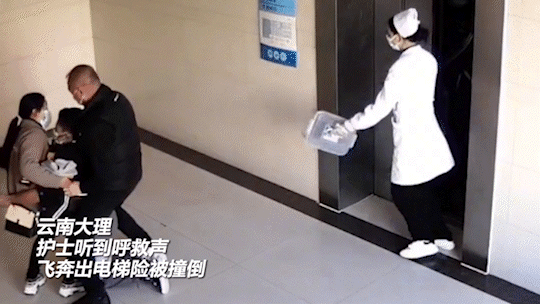 护士飞奔出电梯险被撞倒