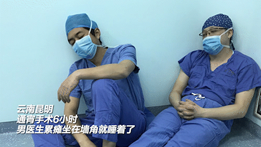 男医生累瘫坐在墙角就睡着了