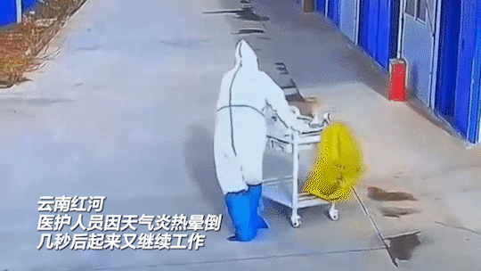 医护人员因天气炎热晕倒