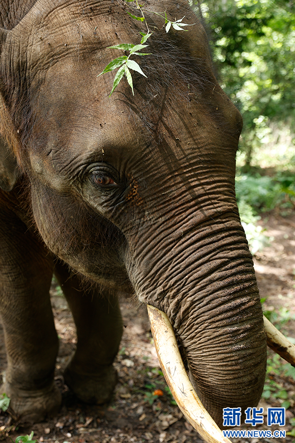 近距离观察救助象“小强”,可以看到它脸部细小的毛发(7月16日摄)。新华网发(刘云 摄)