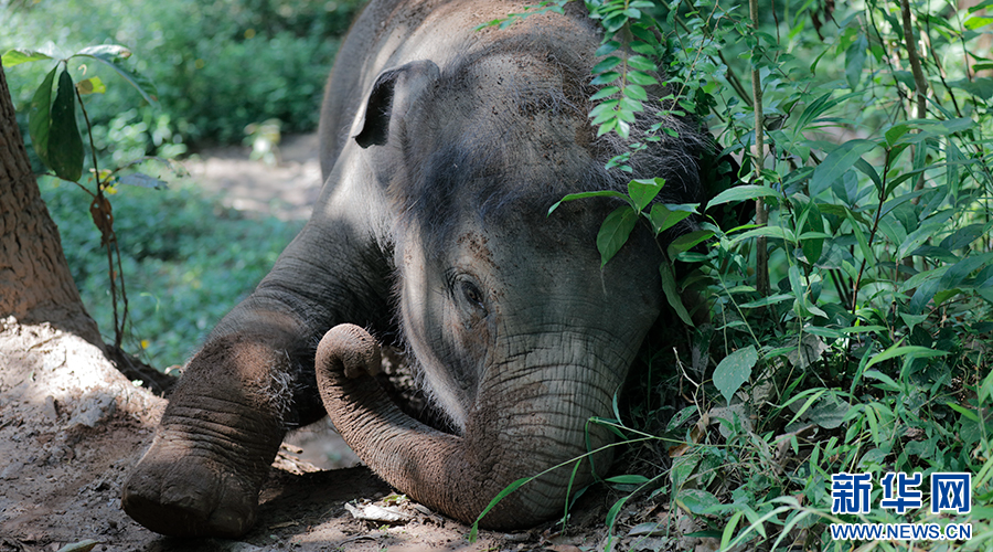 小象“龙龙”在野外玩耍(7月17日摄)。新华网发(徐华陵 摄)