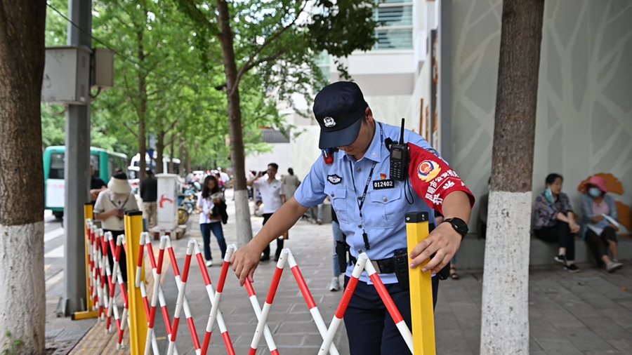 民警设置隔离护栏(资料图)。昆明市公安局五华分局 供图