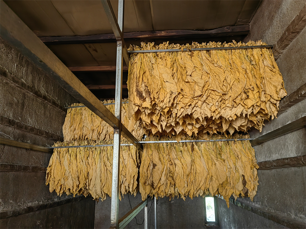 烤烟房内,经过烘烤的烟叶,香气四溢,一片片油亮的绿叶子,变成了黄灿灿的“金叶子”,眼看着这些“金叶子”即将装进“钱袋子”,农户们个个喜笑颜开。五楼社区党总支书记赵开梅介绍,目前五楼社区范围内共种植烤烟600余亩,预计今年烟叶产量将达到25万斤左右,产值近400万元。