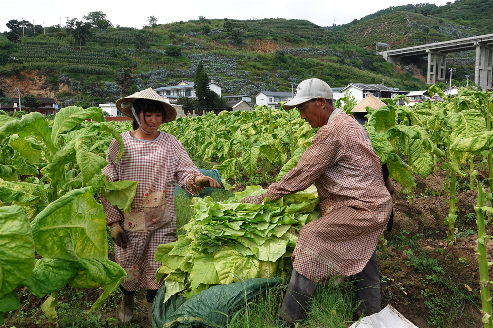 正在采摘烟叶的烟农(8月30日摄)。段红莲 摄