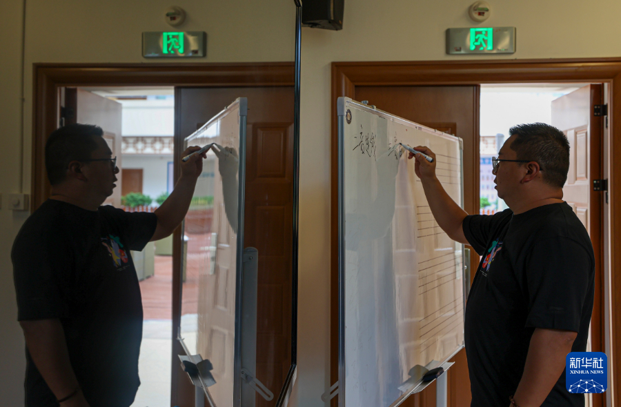 在云南老年大学的图片视频处理课上,老师(右)在授课(9月7日摄)。新华社记者 张旻曦 摄