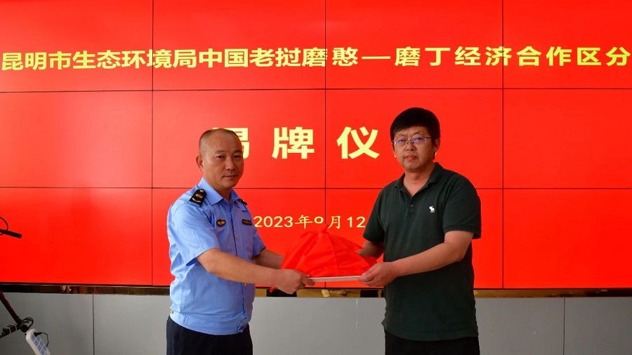 12日,昆明市生态环境局中国老挝磨憨—磨丁经济合作区分局挂牌成立。分局将实行“局队合一”体制,挂牌“中国老挝磨憨—磨丁经济合作区生态环境保护综合行政执法大队”,并履行其职能。