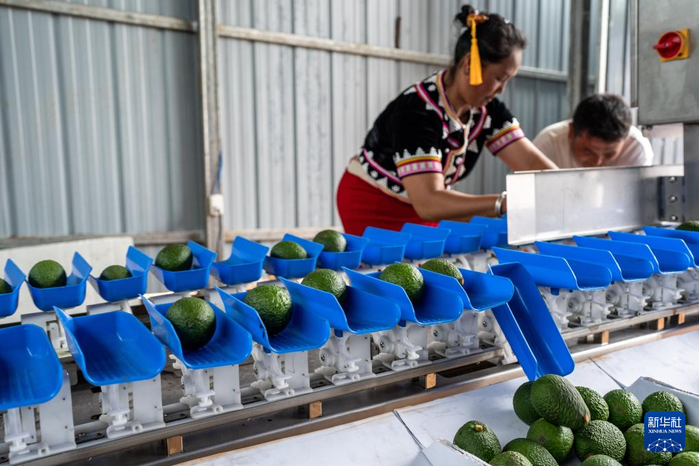9月20日,孟连县娜允镇南雅村牛油果种植基地的农户在分拣牛油果。