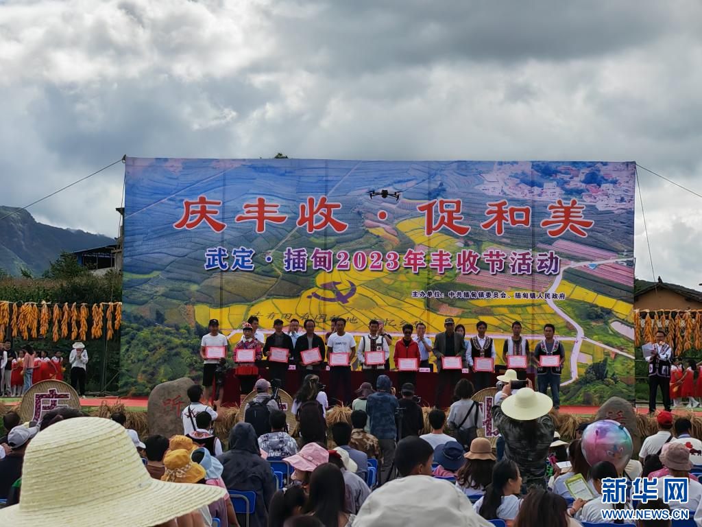 新华网昆明9月25日电(记者字强、王安浩维)金秋时节,稻谷飘香。9月23日,云南省楚雄彝族自治州武定县在插甸镇隆重举行“庆丰收·促和美”2023年丰收节开幕式暨群众庆祝丰收联欢活动,广大群众从四面八方赶来,共享丰收喜悦。