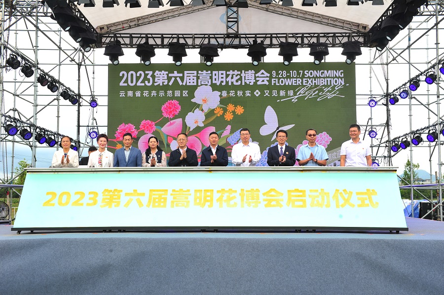 28日,以“春花秋实·又见新绿”为主题的第六届嵩明花博会(以下简称“花博会”)在云南省花卉示范园区开幕。