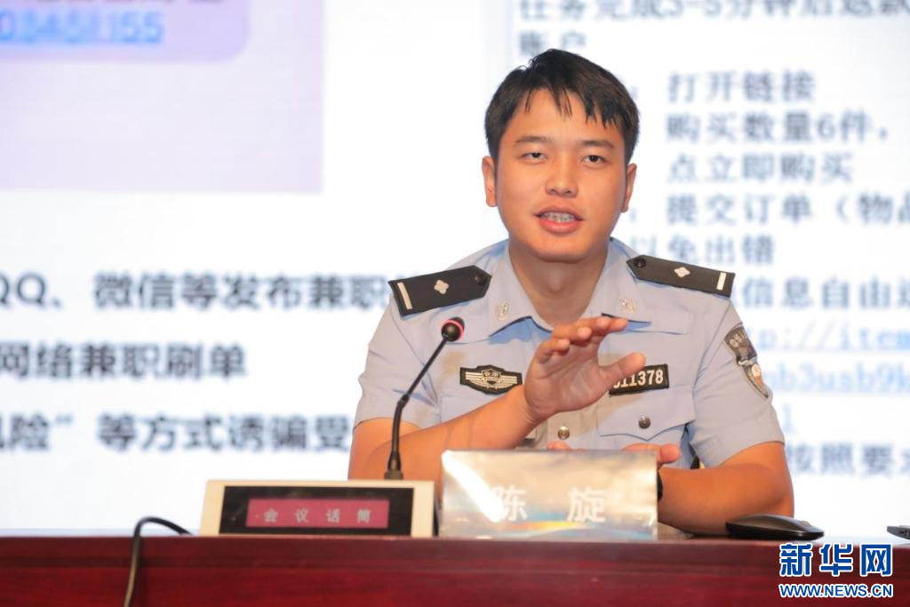 图为昆明市公安局刑侦支队警官陈旋讲授《提高自我防范意识 谨防电信网络诈骗》