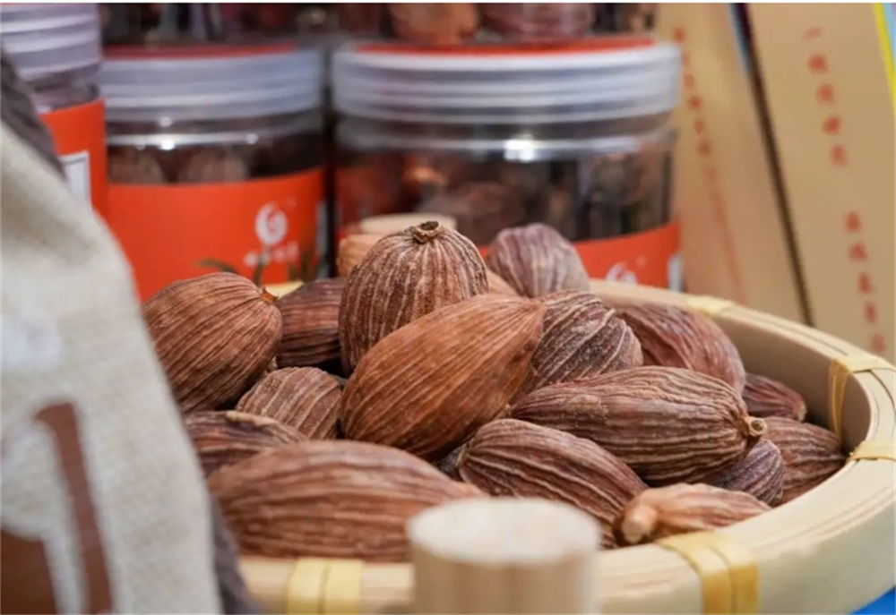 怒江大峡谷是名副其实的“草果长廊”“绿色香料谷”。除了用作香料进行日常美食烹饪外,怒江人民发挥奇思妙想,挖掘了草果的“千面”,“跨界”开发了“草果+”系列产品。在中交助梦·第四届“怒江草果文化周”上,以草果提取物、草果粉、草果精油等为原料开发出的各种调味品、食品、饮品、保健品、文创编织手工艺品等多款产品纷纷登台“亮相”,向世人展示出小小草果的多种功能。