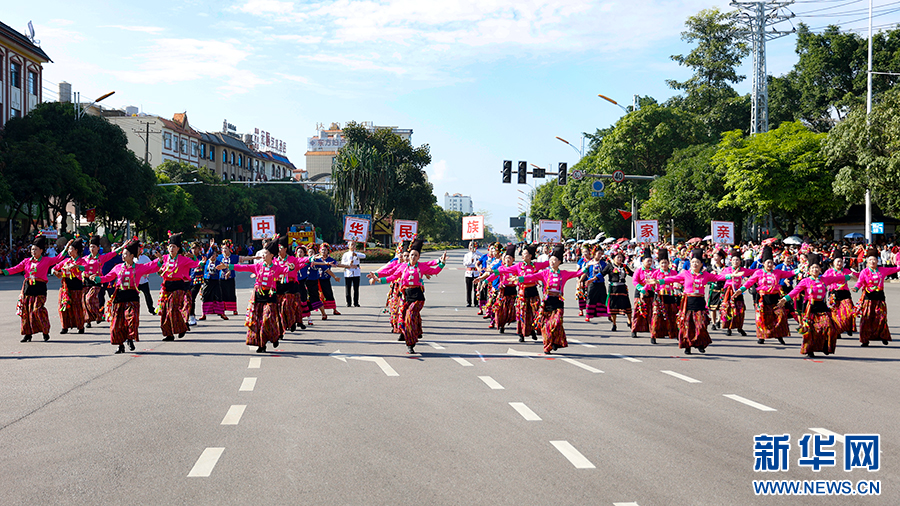 16日,云南省德宏傣族景颇族自治州举行成立70周年庆祝活动巡演,设计精美、造型独特的花车与各具特色的28支巡演方队走上街头,成为一道靓丽的风景线。(完)(康静 刘奕 徐华陵)