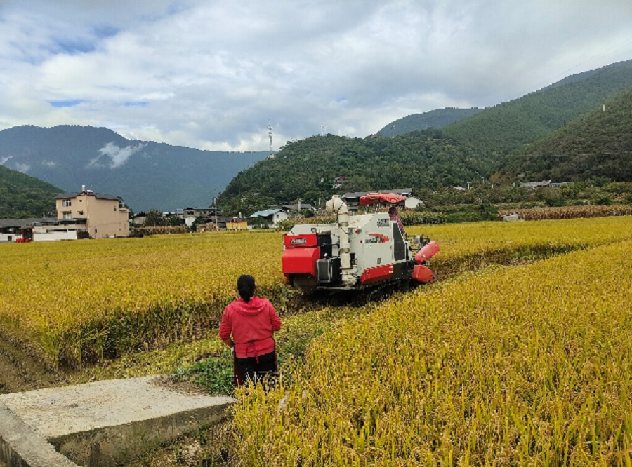 近日,受云南省农业科学院粮食作物研究所委托,迪庆藏族自治州维西傈僳族自治县塔城镇农业综合服务中心对2023年度在塔城镇启别村它洒村民小组种植的“云粳37号”完成了机械实收实测工作。