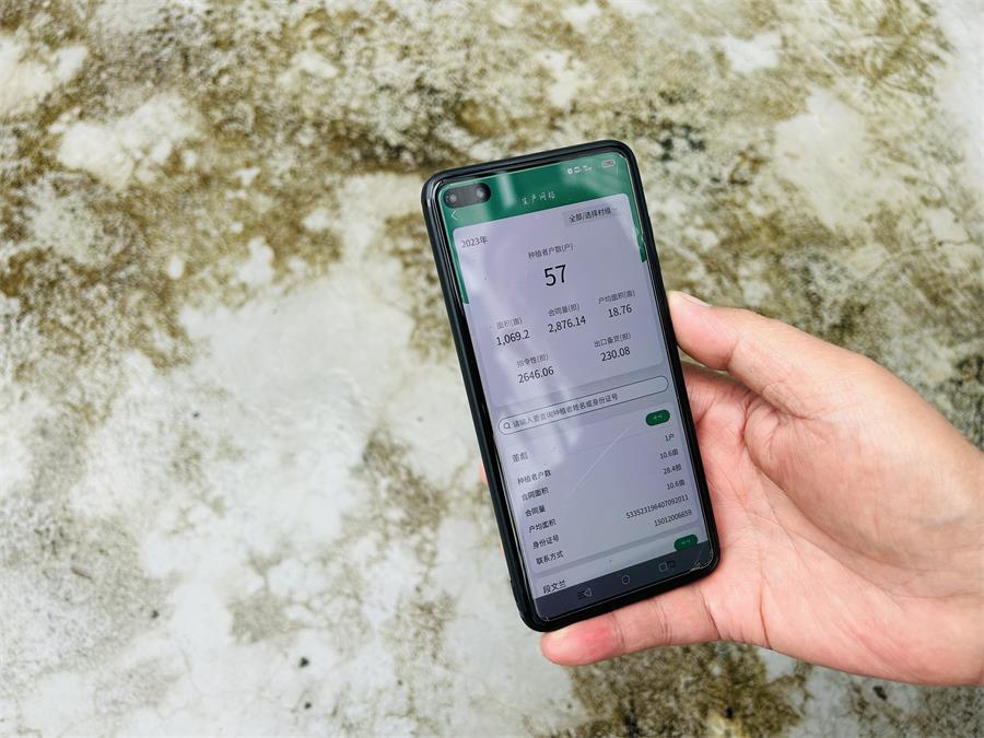 在手机上打开“烟叶生产动态管理平台”APP,烟技员管理辖区内的烟农数量、种植面积、合同量、户均面积及各环节生产进度等数据一目了然,烟技员还可以通过平台查看辖区内每一户农户的具体信息,针对农户情况有针对性地指导农户。