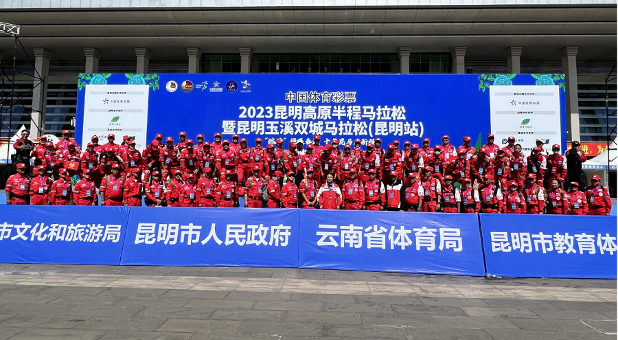 自昆明高原半程马拉松活动开展以来,昆明红十字救援队先后组织1000余名红十字急救志愿者参与马拉松赛事救援保障。(完)
