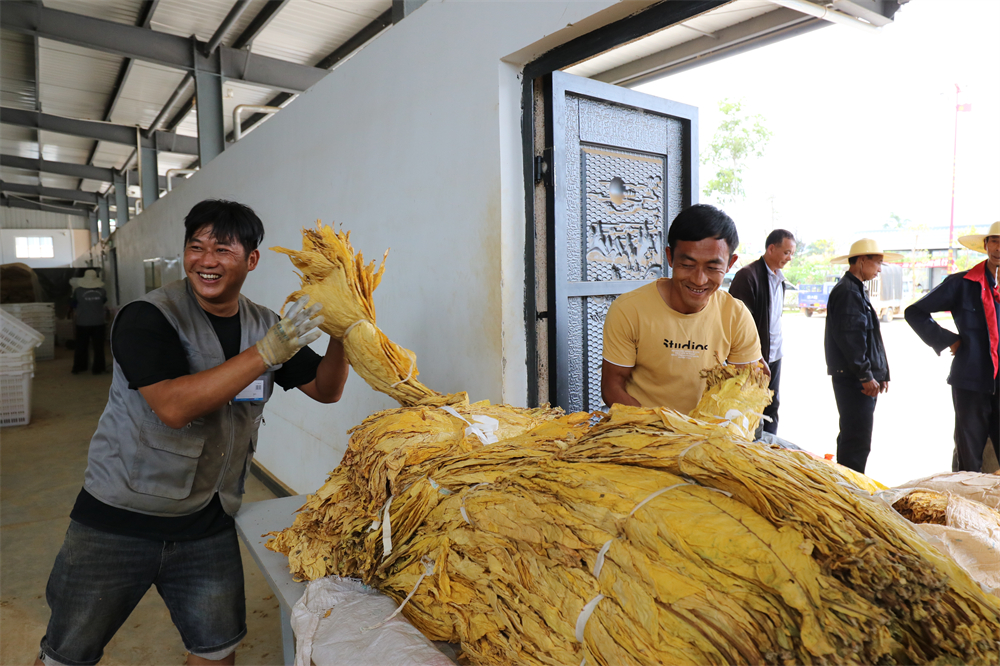 9月,云南省保山市昌宁县卡斯镇的烤烟到了交售的季节。9月8日,烟农们一大早陆续进入卡斯烟叶工作站,分级、评定、过秤、入库、堆码等工作有条不紊地进行,仓库里摆放的各级烟叶很快多了起来。昌宁县卡斯镇广邑社区的烟农赵永军也在交烟队伍中。