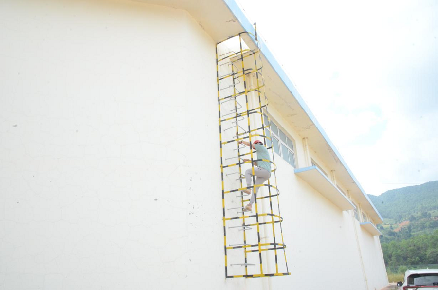 烟叶工作站建筑房屋外围钢直梯防护笼(10月17日摄)。杨云松 摄