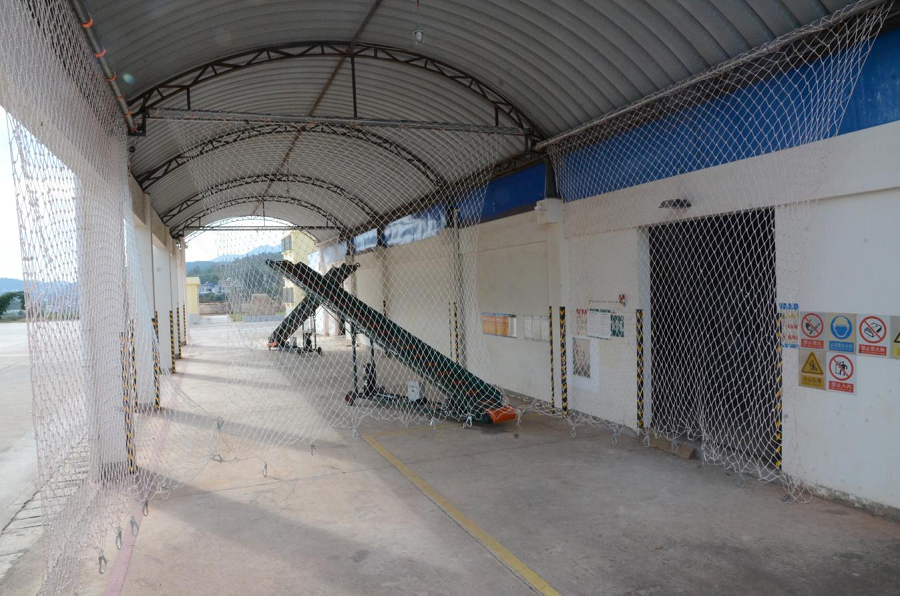 烟叶工作站烟包装卸区全包围防坠网(10月17日摄)。杨云松 摄