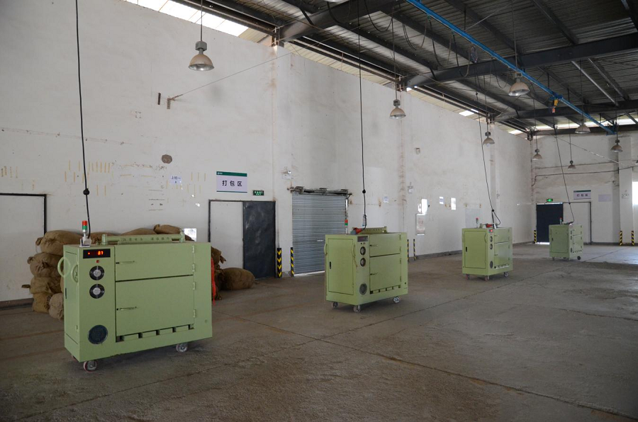 烟叶工作站打包区整齐有序的烟叶打包机及动力线缆(10月17日摄)。杨云松 摄