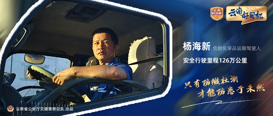 今年,在由云南省精神文明建设指导委员会办公室、省公安厅、省交通运输厅联合主办,中国石化云南石油分公司协办的“争当云南好司机 为美好生活加油”“云南好司机”评选宣传活动中,杨海新获得2023“云南好司机”荣誉称号。
