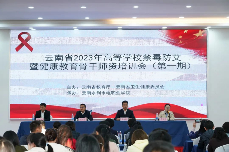 为贯彻落实云南省禁毒防艾有关要求,进一步加强青少年身心健康教育,11月14日至17日,由云南省教育厅、云南省卫健委联合主办,云南水利水电职业学院承办的“2023年全省高校禁毒防艾暨健康教育培训班(第一期)”圆满结束。本次培训共两期,第一期为全省高职高专和省属中职学校负责禁毒防艾及卫生健康教育的骨干教师,约120人参加了培训。省教育厅体卫艺处处长刘天才,学校党委副书记、校长黄海燕,学校党委副书记蔡林礼参加开班仪式。