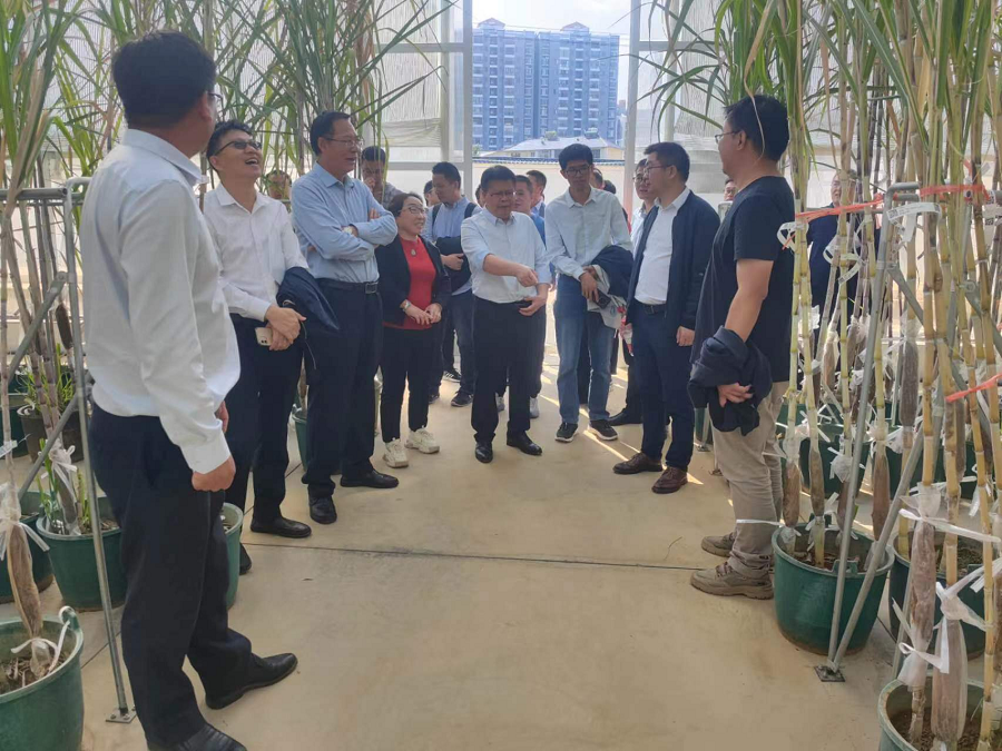 会议期间,与会专家实地参观了甘蔗所新建的现代化甘蔗杂交育种平台。甘蔗所种质资源中心主任、副研究员陆鑫现场讲解本年度杂交亲本诱导、成花效果、杂交花穗生产等相关情况,详细介绍了国家甘蔗种质资源圃(开远)近年来在种质资源收集、鉴定、创新利用等方面取得的实质性进展。与会专家充分肯定了甘蔗所在甘蔗种质资源收集、保存及花穗杂交生产等方面取得的成就。