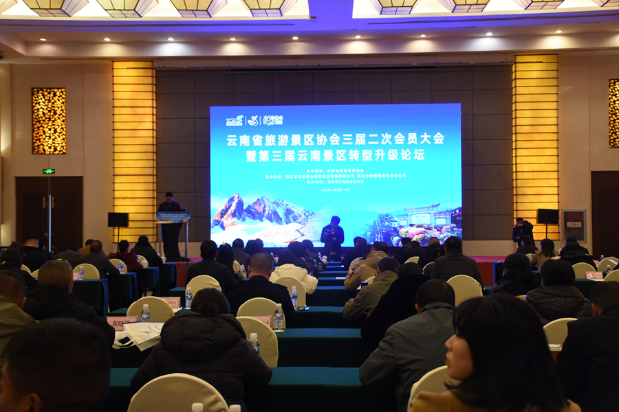 云南省旅游景区协会三届二次会员大会暨第三届云南景区转型升级论坛现场(12月6日摄)。玉龙雪山管委会 供图