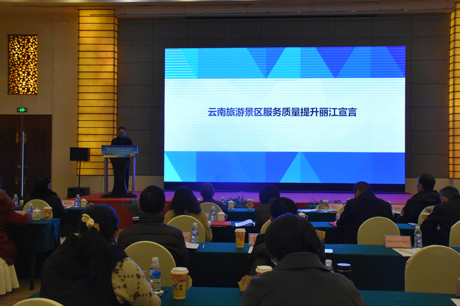 会上发布《云南旅游景区服务质量提升丽江宣言》(12月6日摄)。玉龙雪山管委会 供图
