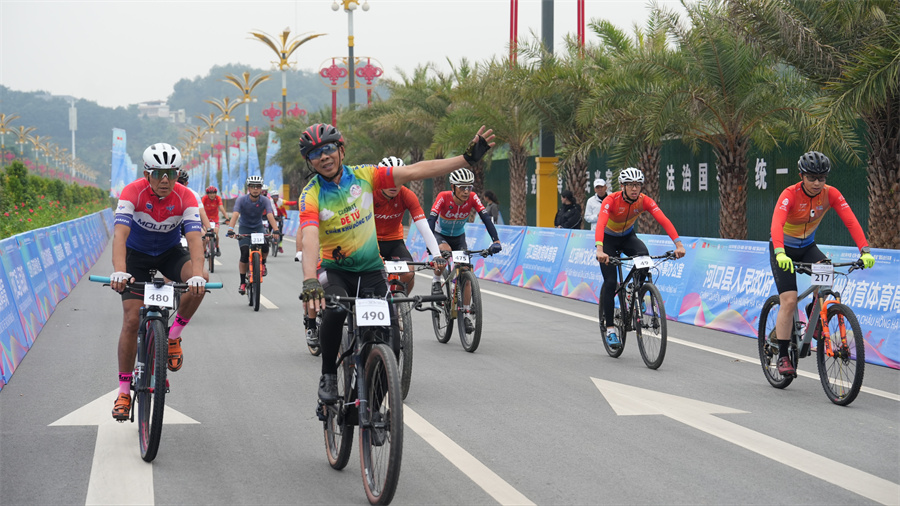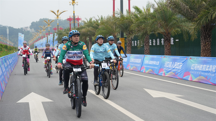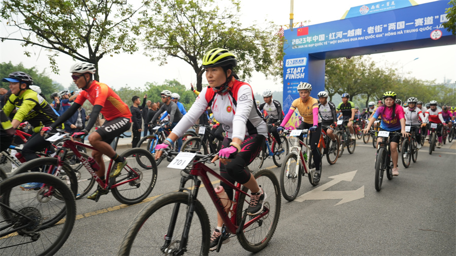 9日,2023年第四届中国·红河–越南·老街“两国一赛道”国际自行车赛在红河州河口县正式鸣枪开赛。
