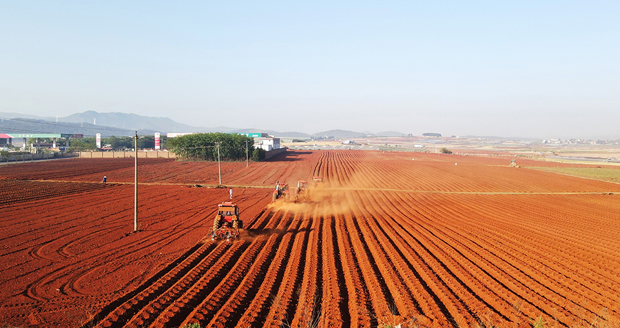 红河哈尼族彝族自治州泸西县白水镇烟田机械化整地理墒打塘一体化作业(资料图)。云南省烟草专卖局(公司) 供图