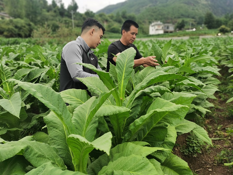 技术人员查看烟叶生长情况(资料图)。洱源县三营镇烟站 供图