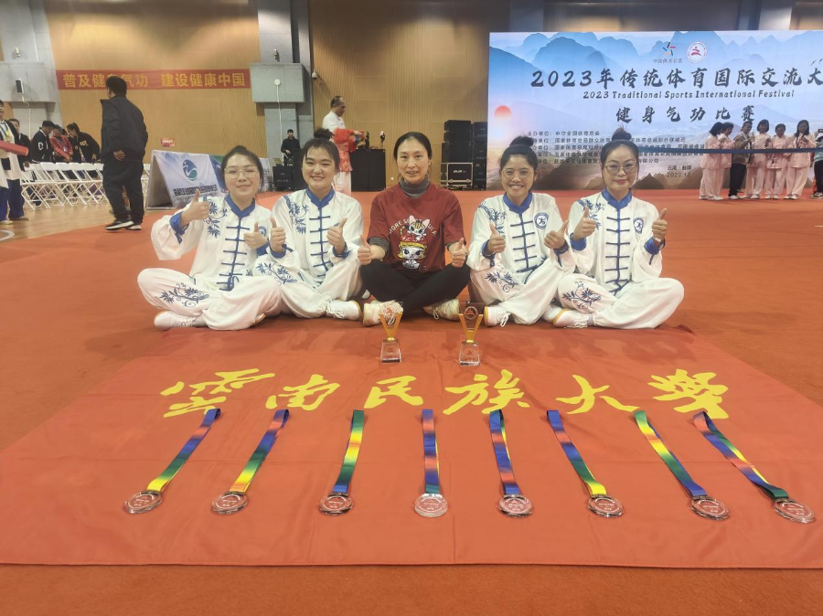近日,云南民族大学缅甸留学生杨琪冰、努佳、排溪月及泰国留学生孙雅在2023年传统体育国际交流大赛中获多个奖项。