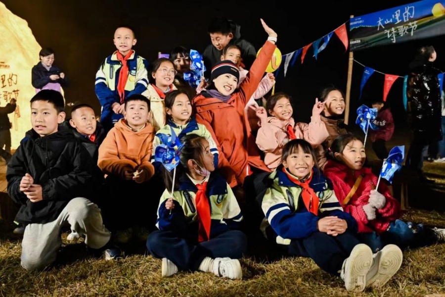 石头是诗歌的驿站,古人把诗落笔成摩崖石刻,代代相传成今人眼底的惊叹;石头又是善意的邮亭,将山外的温暖,传递给大山里写诗的孩子。2023年12月23日,中国银联携手中国宋庆龄基金会、乡村诗歌教育公益组织是光诗歌,在云南省保山市昌宁县漭水镇举办了一场“大山里的诗歌节”。以诗之名,以石为书,将山里孩子的诗歌刻在夜晚发光的“石头”上,让他们的才华与坚韧耸立在大地上,让来自山外的善意与温暖照亮孩子们的未来。