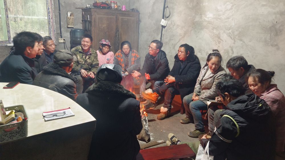 中坝村村民和村干部“火塘夜话”(2023年12月23日摄)。