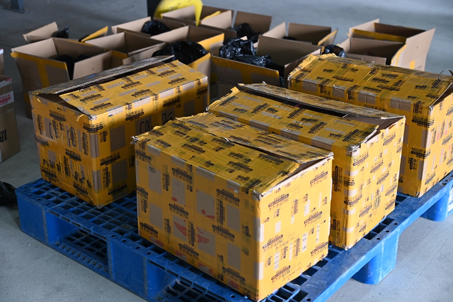 现场查获走私烟(12月26日摄)。赵晔婷 摄