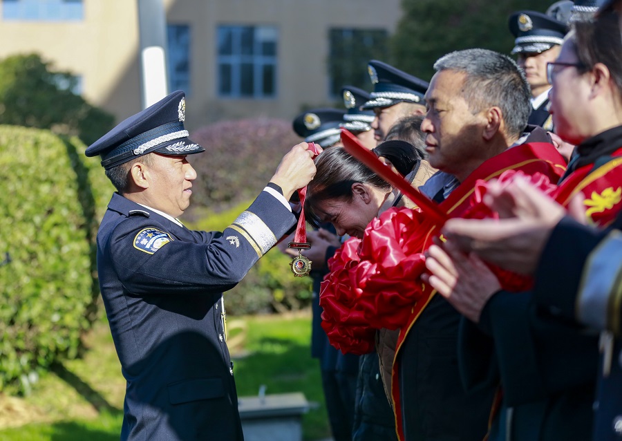 颁发“从警纪念章”(1月10日摄)腾冲市公安局 供图