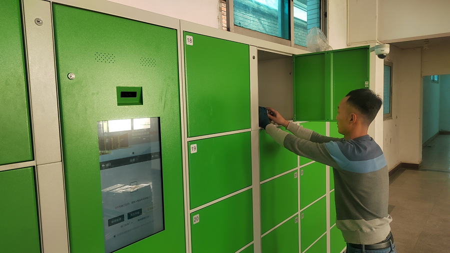 配送员将货物放入智能取货柜(1月2日摄)。陈浩悟 摄