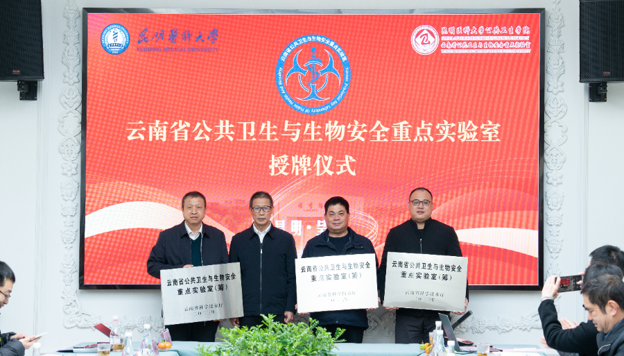 云南省公共卫生与生物安全重点实验室(筹)由昆明医科大学、云南省疾病预防控制中心、昆明理工大学联合共建。会上,云南省科学技术厅副厅长尚朝秋为重点实验室授牌。