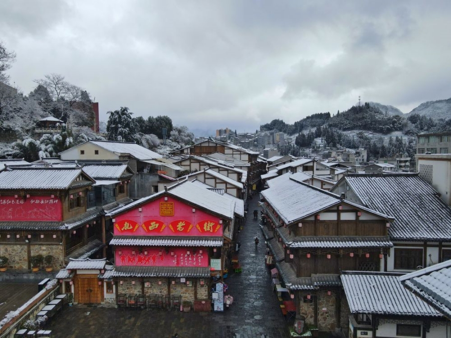 漫步扎西红色小镇,雕梁画栋间,漫天“琼芳”缓缓飘落,裹挟着宁静与诗意,为老街披上一层白色外衣。雪后的扎西会议会址、扎西会议纪念馆、扎西红军烈士陵园别具魅力。(徐红、申丽琴、姜航、王文相)