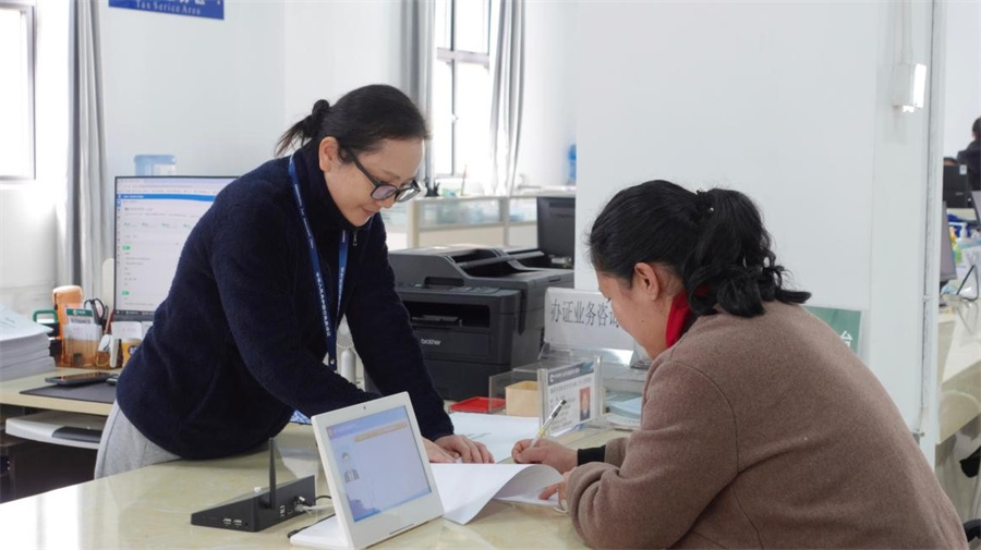 金平县烟草专卖局工作人员为群众办理许可证业务(1月19日摄)。李梦洋 摄
